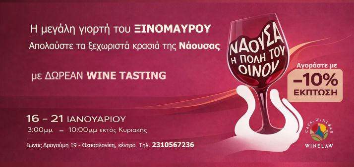 Η Cava Winelaw διοργανώνει ΔΩΡΕΑΝ Wine tasting για τα κρασιά της Νάουσας από τις 16 Ιανουαρίου έως και 21 Ιανουαρίου (εκτός Κυριακής), από τις 3.00μμ έως και 10.00μμ.